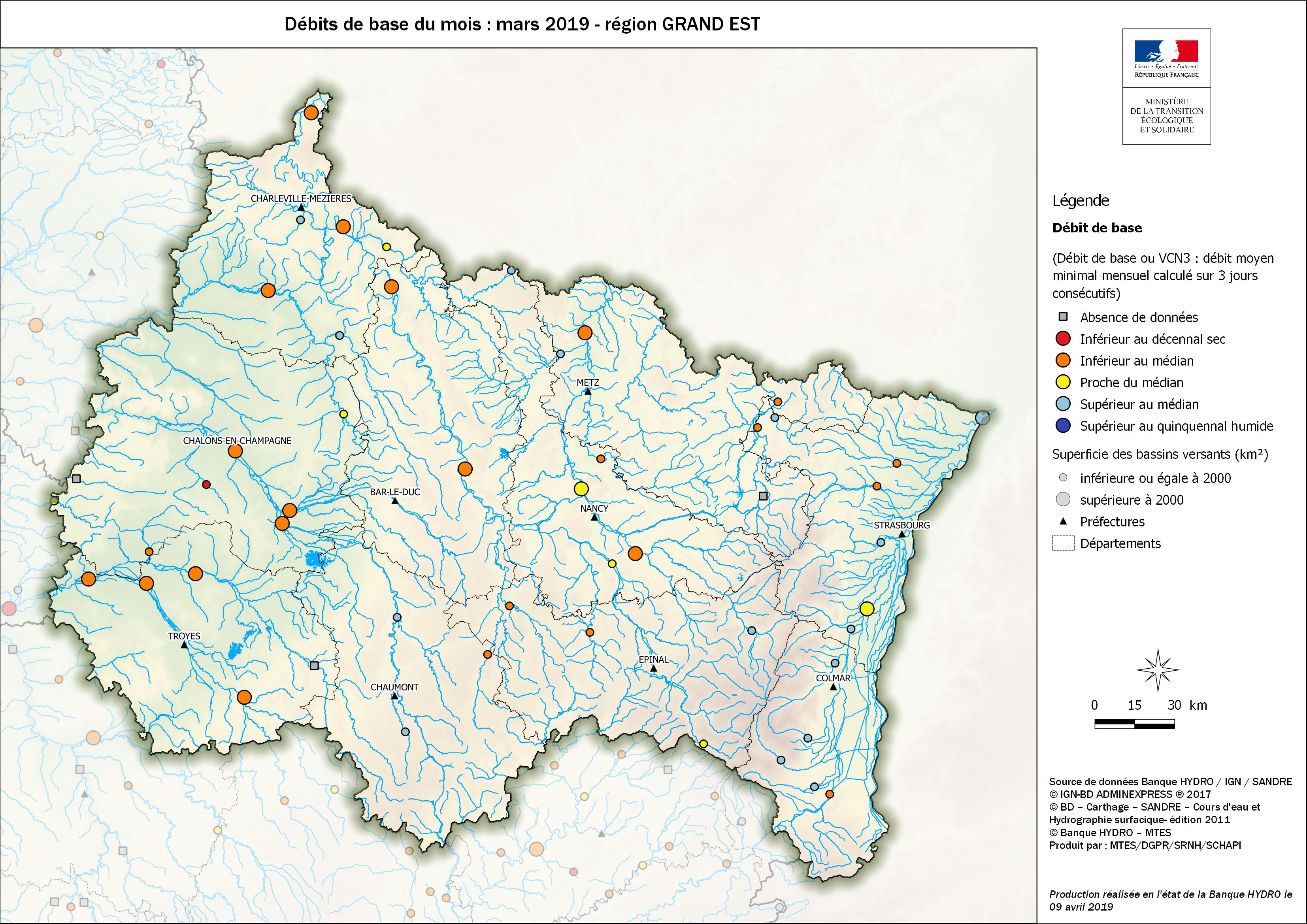 Sur les bassins de la Meuse et de la Moselle, malgrés des précipitations soutenues dans le courant du mois de mars (crues de saison),
