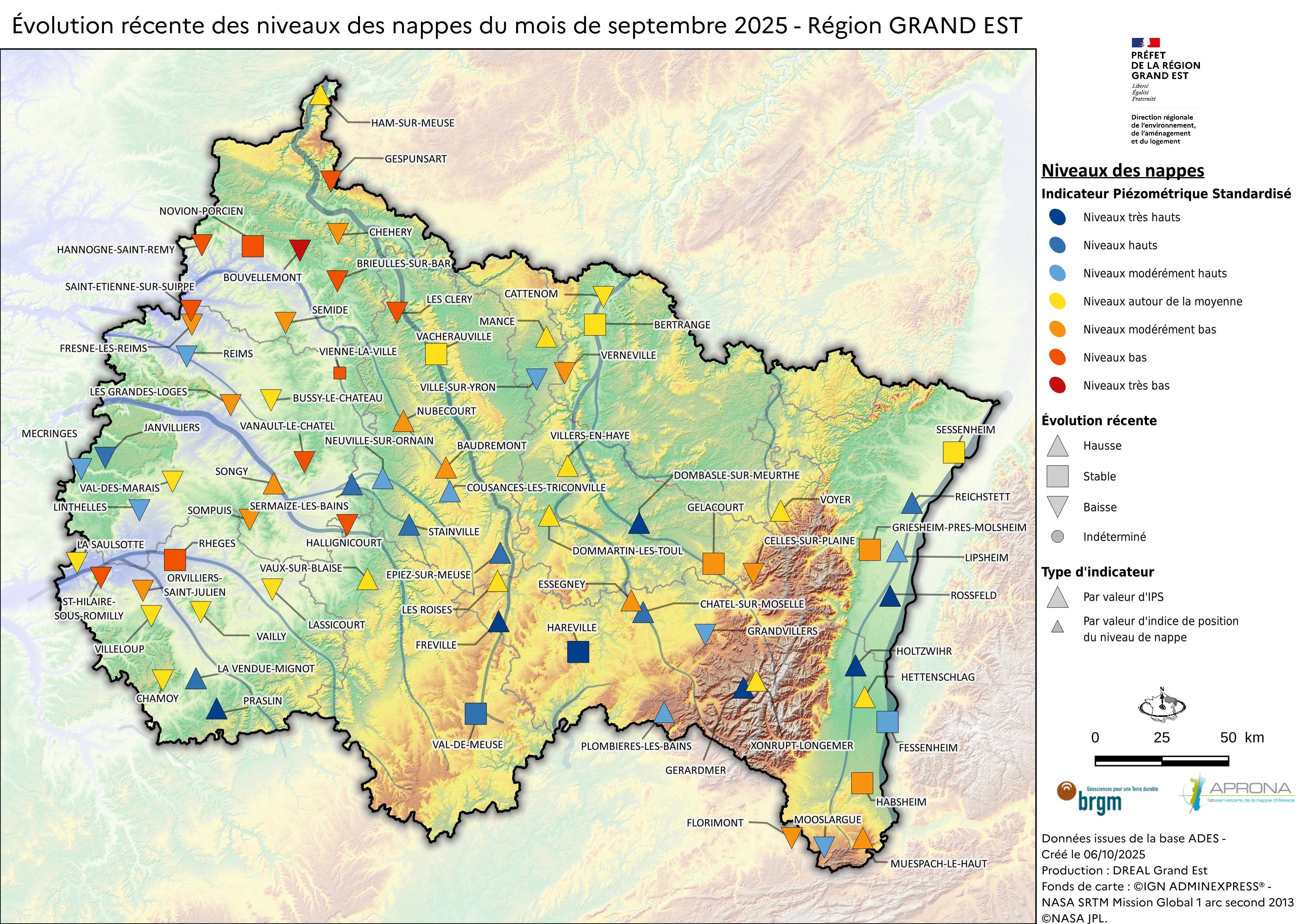 Les niveaux bas ou très bas concernent moins de 15% des points de suivi sur le Grand Est en ce mois de septembre.