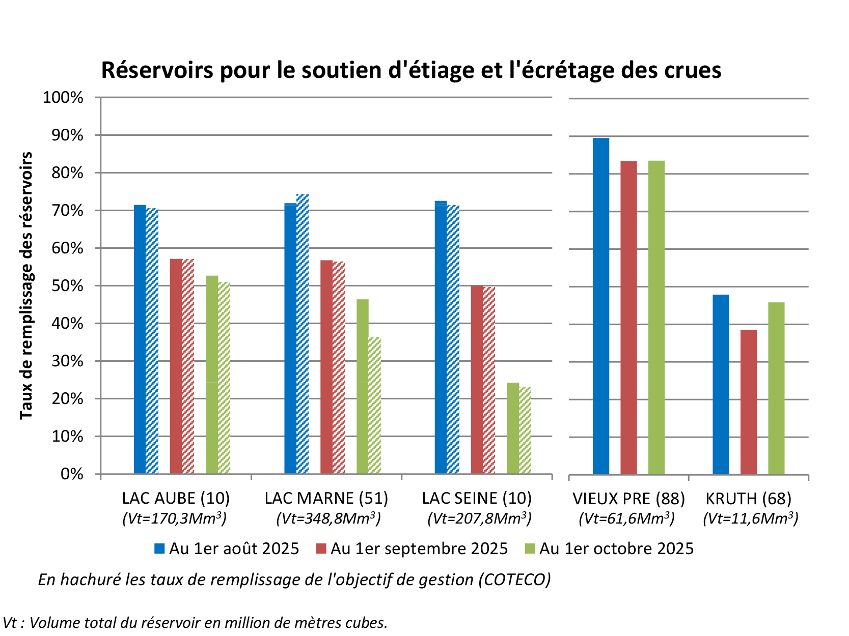 En ce qui concerne les barrages-réservoirs du bassin de la Seine, leur taux de remplissage s’élève à 42%, ce qui est légèrement supérieur à l’objectif de gestion pour une fin septembre.