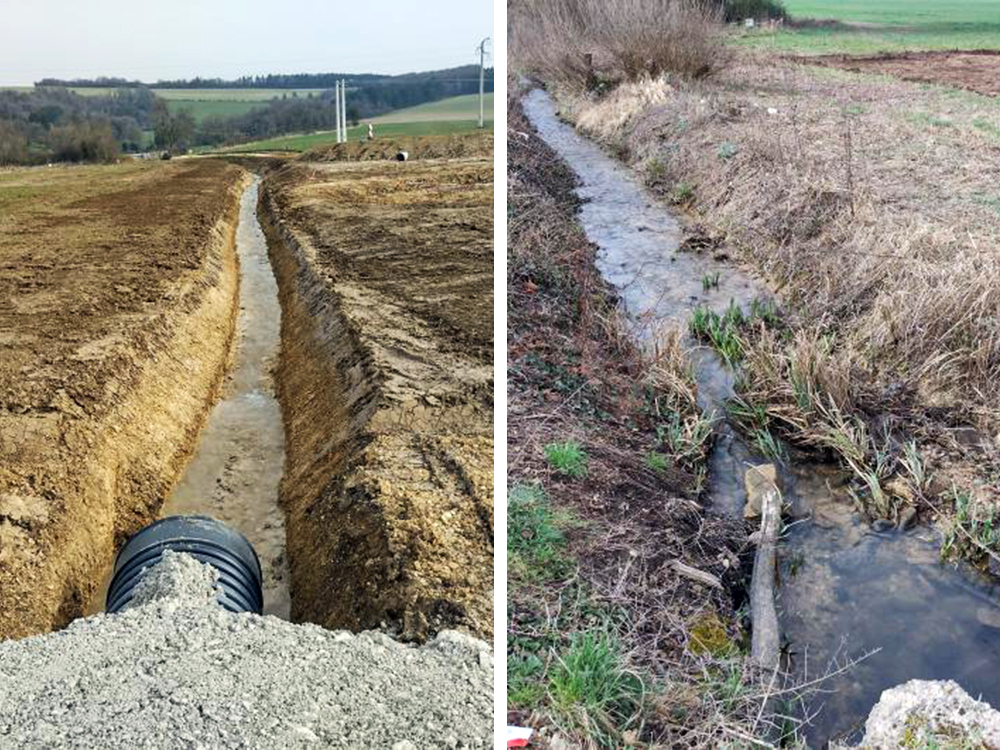 - Ruisseau de Vauxelle : Déviation provisoire à gauche et existant à droite (Mars 2026) | Crédit photo : EGIS